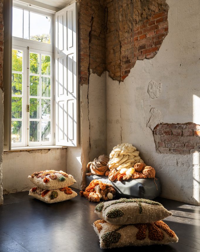 A participação oficial organizada pela ApexBrasil tomou forma na exposição Amuleto, com curadoria de Bruno Simões e cenografia de Lucio Richetti. O conceito partiu de uma ideia simples: objetos que carregam significado e proteção para mostrar como técnicas ancestrais brasileiras, quando reelaboradas, se convertem em produto contemporâneo competitivo. O estande integrou 31 marcas e estruturou um percurso em que matérias-primas naturais, pesquisa de materialidade e acabamento preciso aparecem como linguagem, valorizando o simbolismo das peças. Os nomes brasileiros apareceram com consistência e diversidade, o que ajuda a explicar por que a mostra soou atual aos olhos internacionais. A cooperativa de tapeçaria Trapos & Fiapos e o artista Sergio Esteban, por exemplo, formaram um conjunto que faz pontes entre território e linguagem. Ao trazer esse elenco fora dos centros tradicionais brasileiros, Amuleto sugeriu que observar materiais e respeitar o tempo do fazer manual expressa objetos de abrangente leitura internacional.