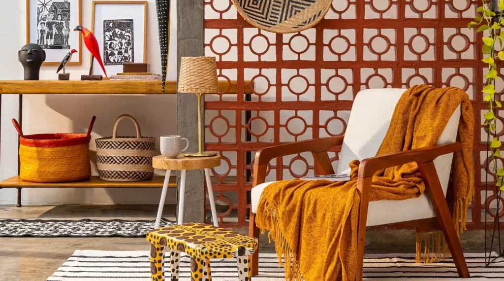 Se a arquitetura brasileira se define pela fluidez entre dentro e fora, a decoração segue a mesma lógica: plantas por toda parte, materiais naturais, uma certa informalidade que convida a sentar e ficar. A presença da natureza se estende aos materiais. Madeira, fibras, cerâmica, palha: a casa brasileira tem textura. O móvel de madeira maciça herdado da avó, a rede na varanda, o banco de tronco, os cestos de palha que organizam tudo. Mesmo em ambientes contemporâneos, esses elementos aparecem como contraponto ao acabamento liso e industrial. É uma forma de manter o contato com superfícies que não são frias nem uniformes.