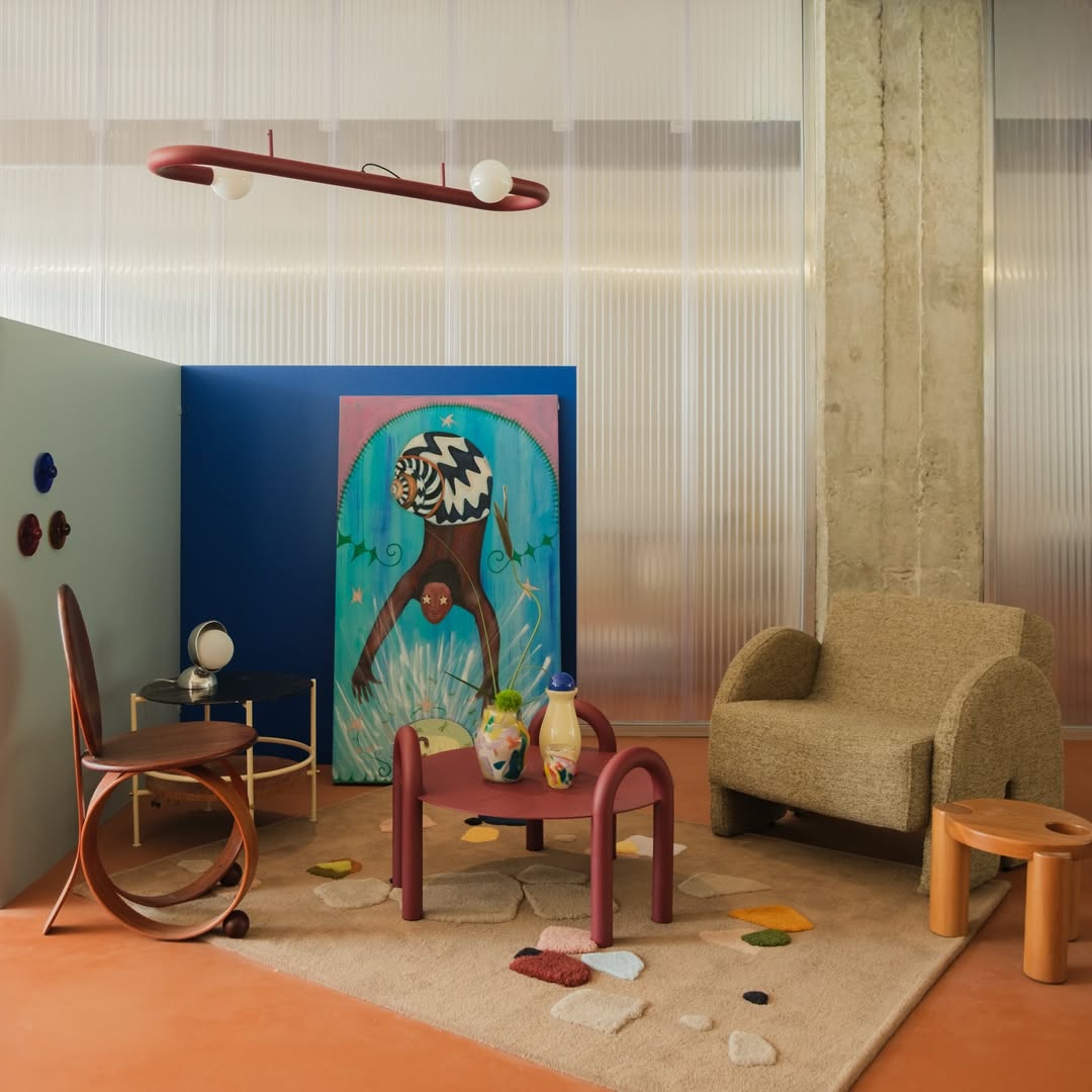 Na Galeria Metrópole, a exposição “Dentro de Casa” trouxe outra camada a essa reflexão. Peças de mais de 30 designers e artistas brasileiros foram dispostas em ambientes que simulavam salas de jantar e de estar, sob curadoria de Daniel Virgnio e Natália Martucci. O interesse da proposta estava menos nos objetos individuais e mais na operação curatorial: ao inserir design em contextos domésticos reconhecíveis, a mostra tratava a casa como campo de investigação cultural, um lugar onde escolhas materiais e formais traduzem modos de vida.